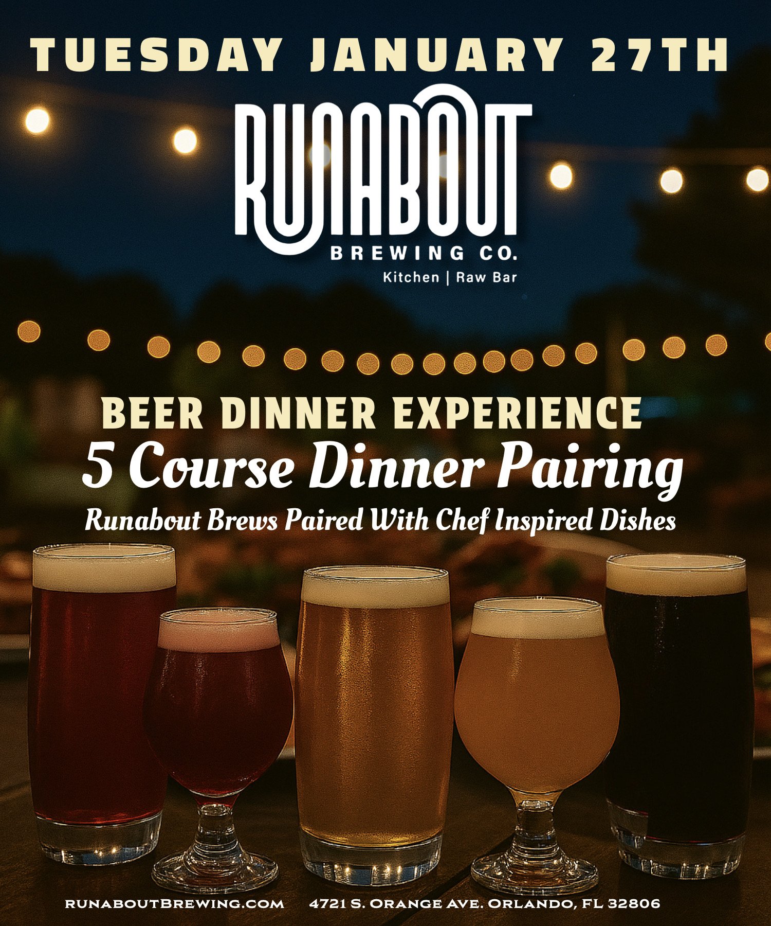 Located just south of downtown Orlando, Runabout Brewing is a hangout for locals and visitors featuring craft beers and spirits, an oyster bar, and creative cuisine. Our establishment combines the expertise of multiple award-winning brewers with a passion for culinary innovation to offer a unique and memorable experience.